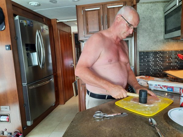 Here I am flattening a chicken breast for the first time. It was a good meal.