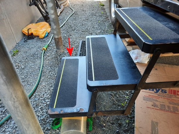 On Tuesday, since it was a little cooler, as in only +29° C. I fixed our stairs on the MH.