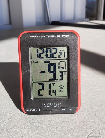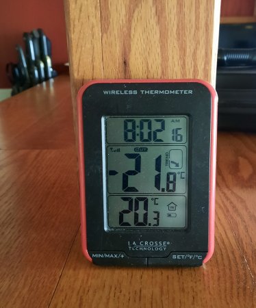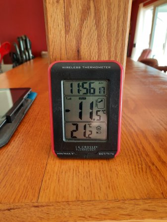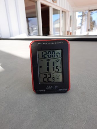 The sun is warming up the sunroom nicely. It is 21.2° inside and 22.9°