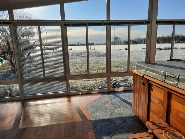 When it gets warmer in the sunroom than in the house, we open the patio doors to let the warm air come into the house.