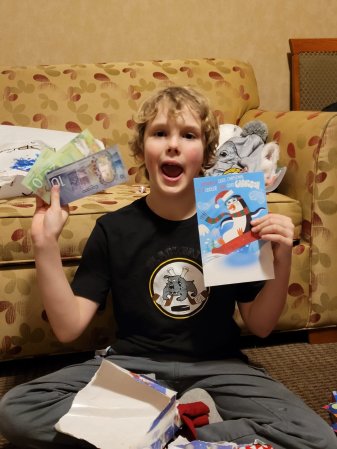Jeremy and Kristin gave our Christmas card to Gabriel. Gabriel did
