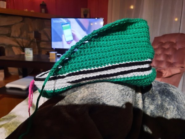 Michele started a new pair of converse slippers for a friend of Benoit.