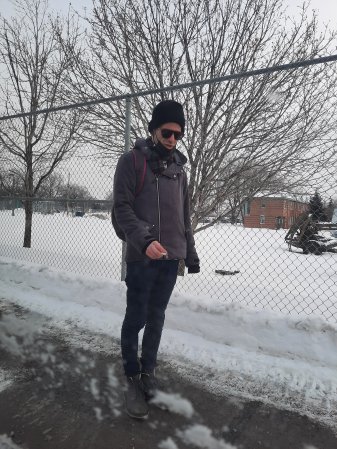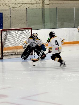 Natasha looks so small next to her brother Gabriel in his goalies'