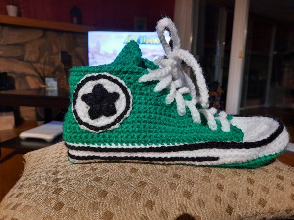Michele has started a new pair of "Converse" slippers. This pair is for