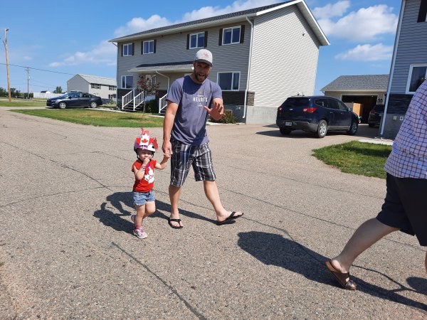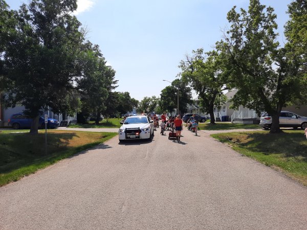 We are on our way to the outdoor ring to participate in the Canada Day Parade on base.
