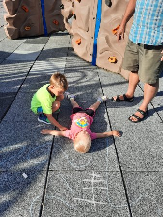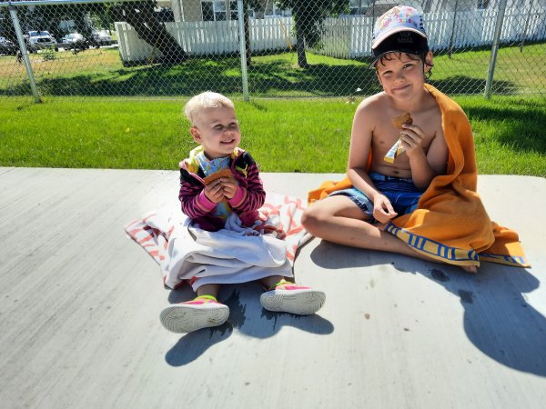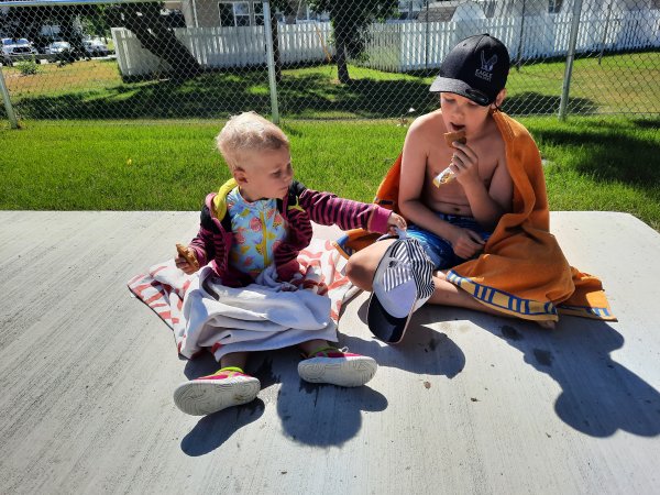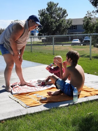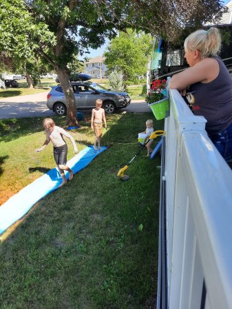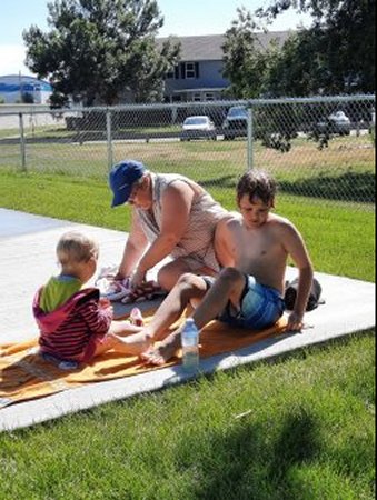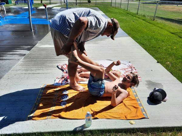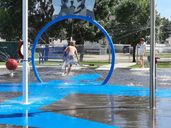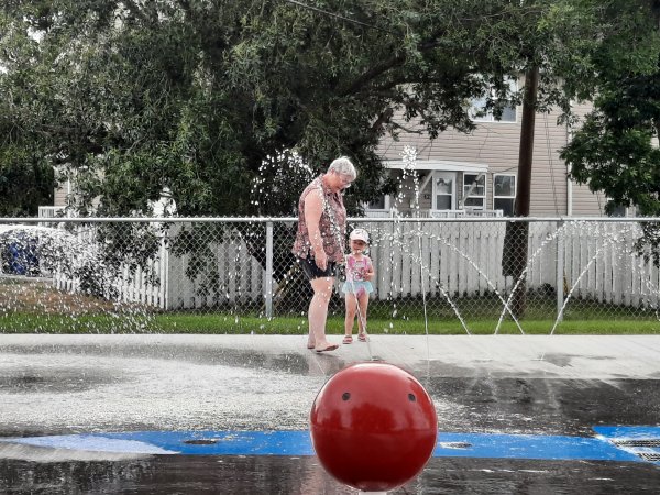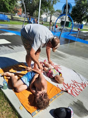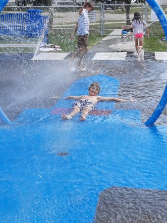 By late afternoon, we head to the splash park with Gabriel and Joshua.