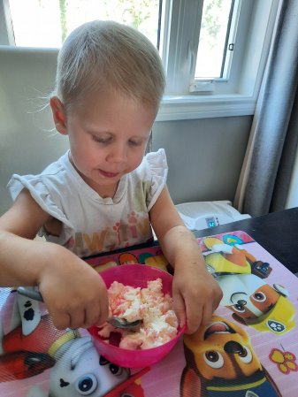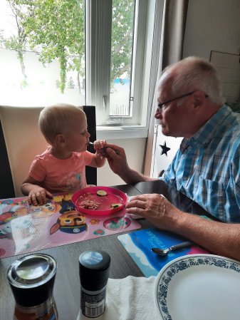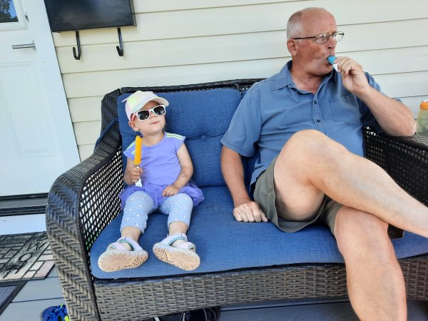 We spy on grand-maman and Natasha. They are eating some Mr. Freeze.