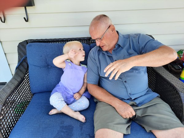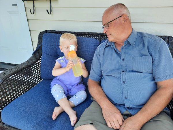 It is funny to look at Gabriel after he sits for a while. When he walks, he looks like an old man...