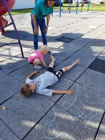 Gabriel's friends are at the park too. Nicole is there, so are her kids.