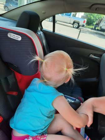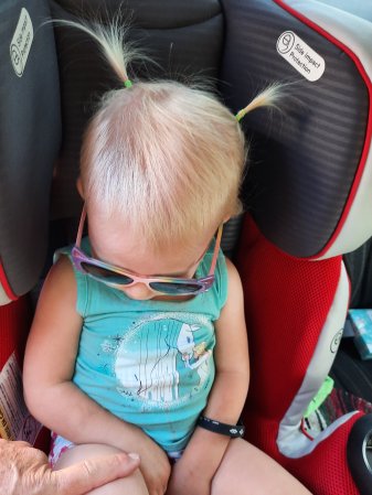 When we picked up Natasha at daycare, we had a surprise. She had three little ponytails.