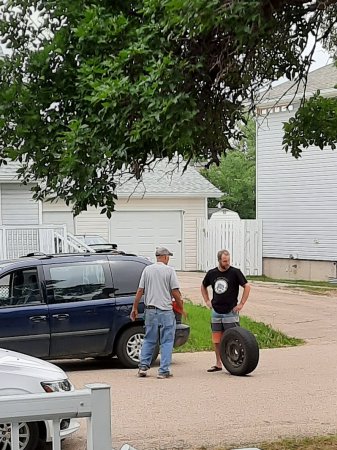 Jeremy is selling 4 tires with rims. This gentleman came over to check