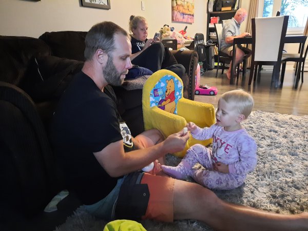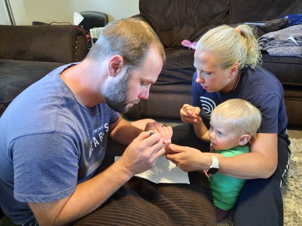 Dad has to help her a bit.