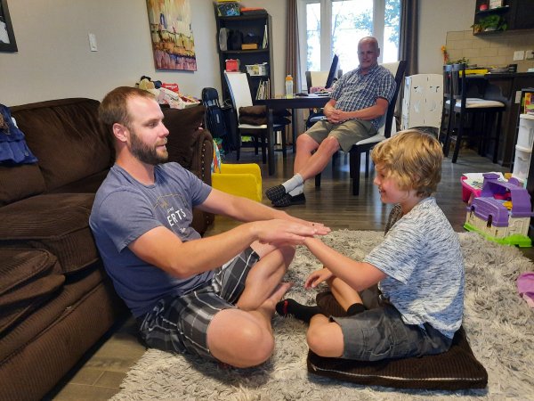 Gabriel is sticking to his dad. Gabriel is happy that he will see his