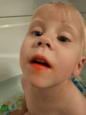 The Mr. Freeze was the orange flavour, take a look at her mouth.