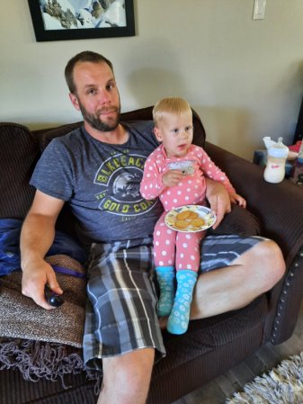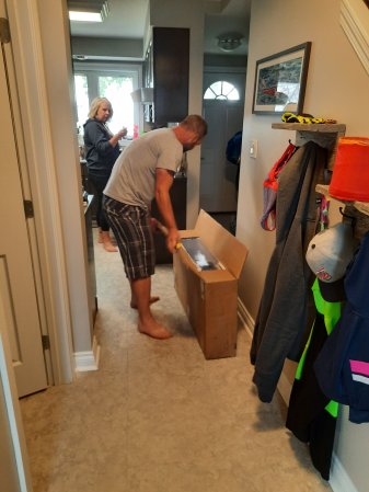 Jeremy and Kristin bought some donuts and coffee for the movers. Natasha "stole" a donut for lunch.
