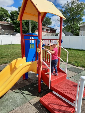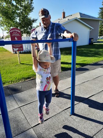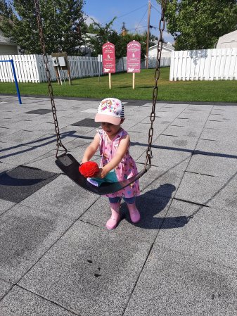 We are on our way to the playground. She can hold on for 10 seconds.