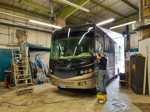 I almost forgot. Sunday, the owner of Crystal Glass came to finish the sealant around the windshield.