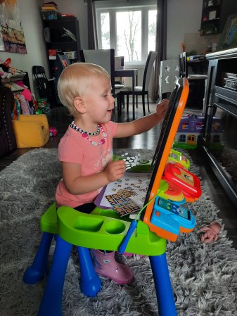 Natasha even tried to sit on the little chair.