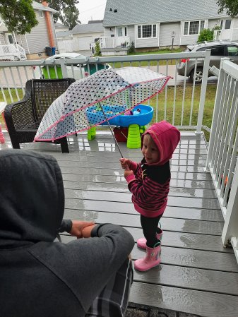 Natasha got an umbrella. Since it is raining this evening, she gets to use it.