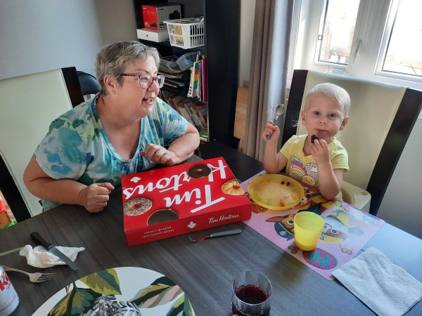 Grand-maman is having fun with Natasha.