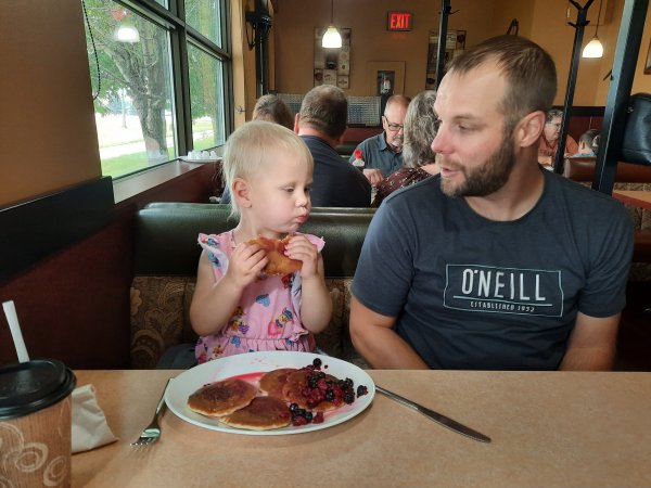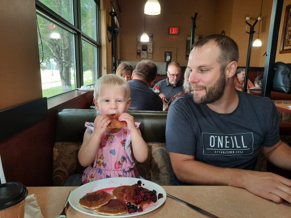 Sunday morning, Jeremy, Natasha and I went for breakfast in town. Natasha was very hyper today and not because of the syrup.