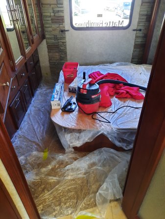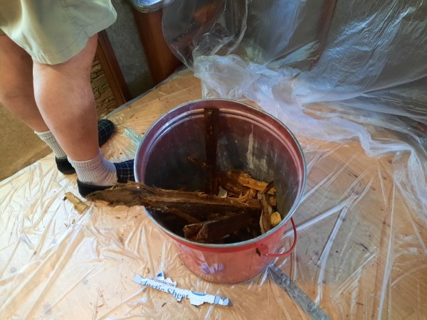 I remove and clean the area as best as I can. We will let it dry for a few days.