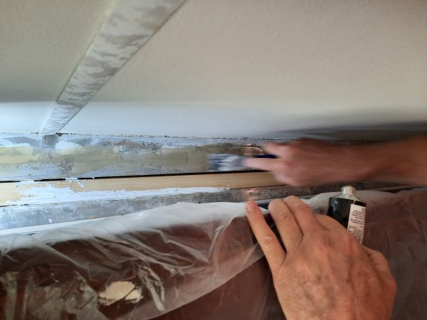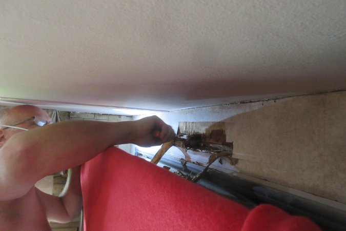I am getting ready to install the piece of 2 by 2 in the cavity of the wall we are repairing.