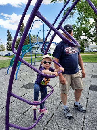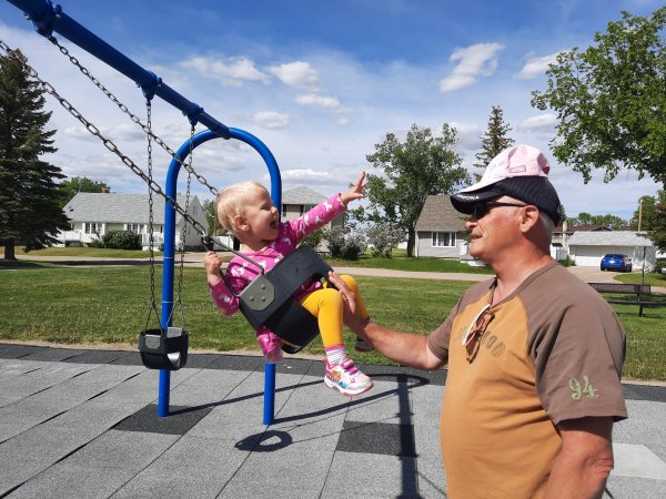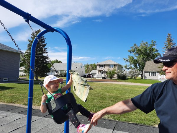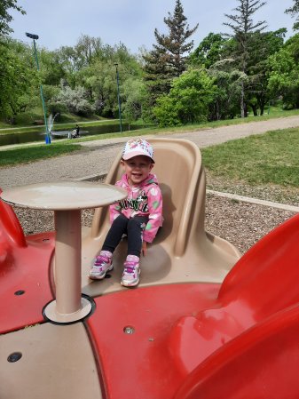 Natasha and I are at the Crescent Park in Moose Jaw and feed the ducks.