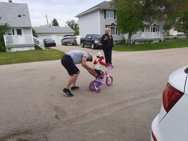 Jeremy and Kristin decided to try Natasha on her new bike.