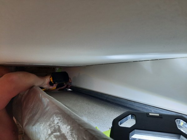 Because the slide moulding will hide the bottom part of the panel, I use screws to hold the panel in place.