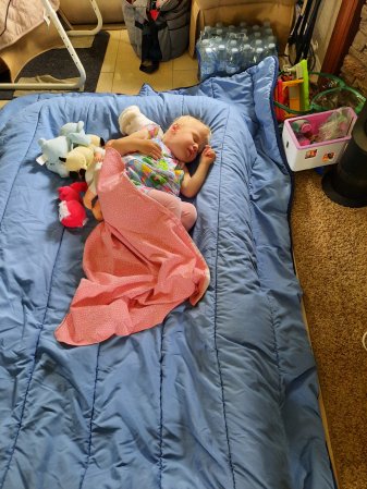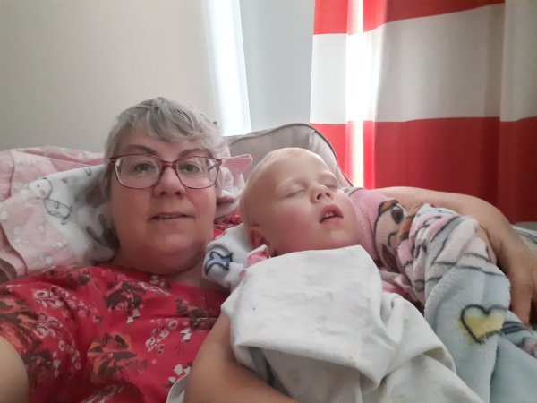 Because she is all stuffed up, she sleeps better in a semi-sitting position.
