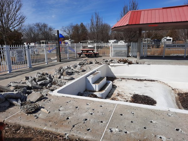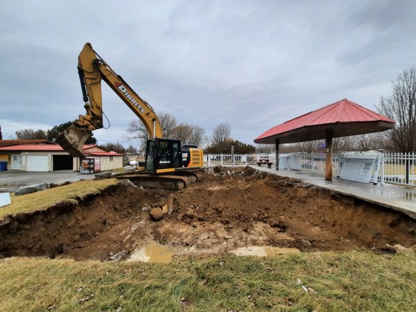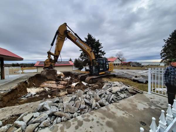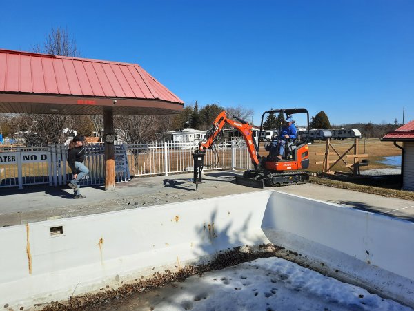 In a few days, a big excavator will be here to tear down the old pool and the concrete to make room for the new pool.