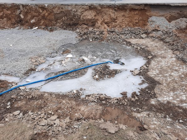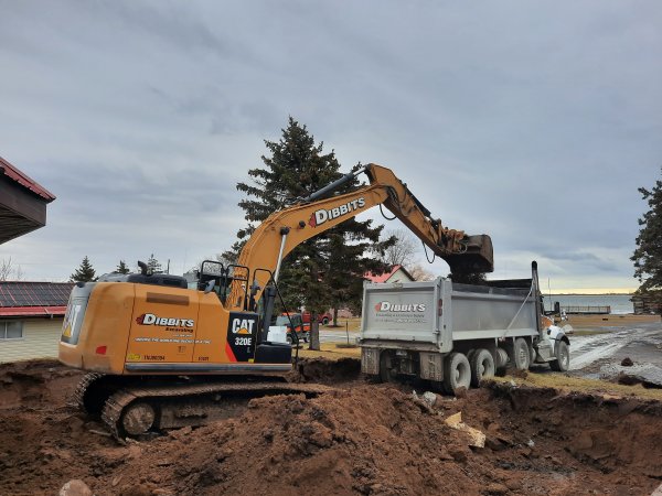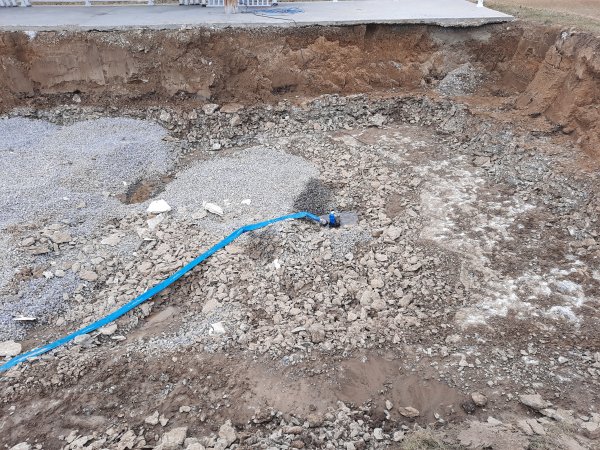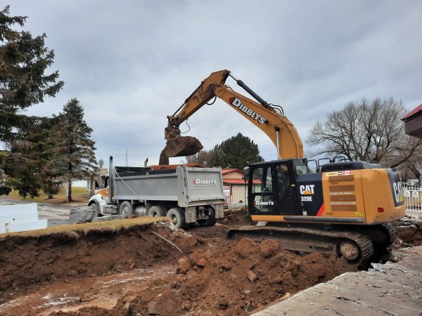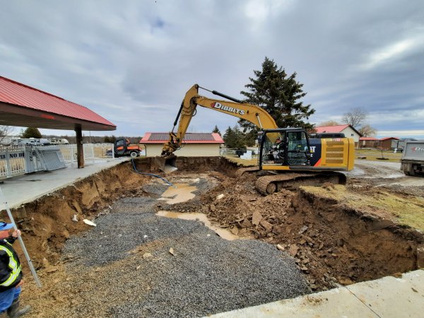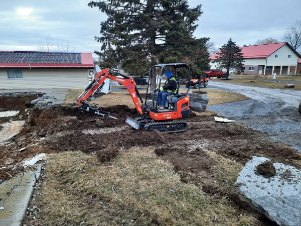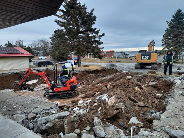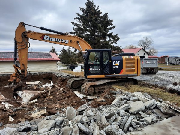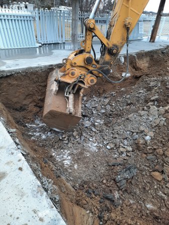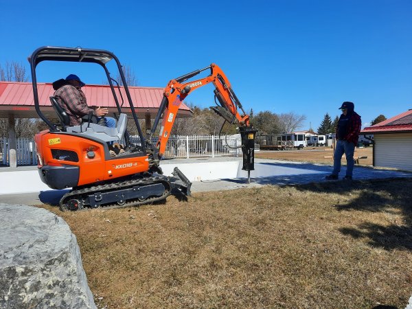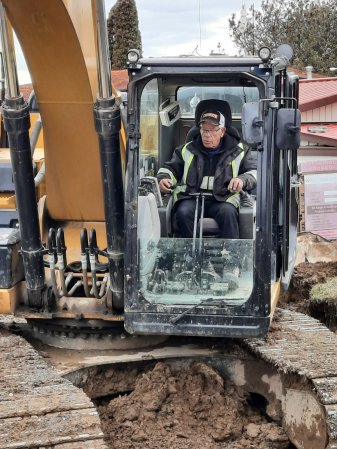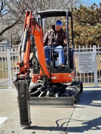 Jan had to go into the hole to break more concrete before the big excavator could continue.
