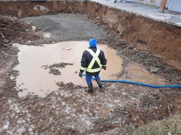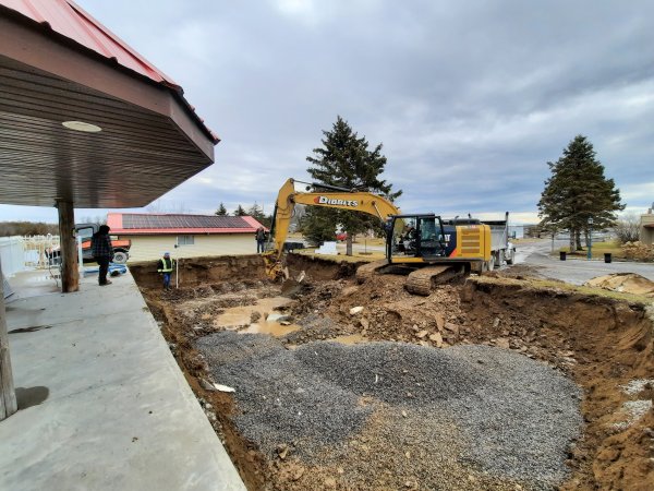 Jan gives indications on how deep the hole needs to be for the new pool.