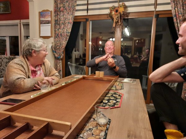 An evening at Jannie and Jan's place without playing Sjoelbak is