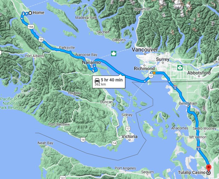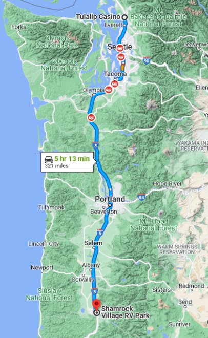 Our first night is at the Casino Tulalip in Marysville, Washington.