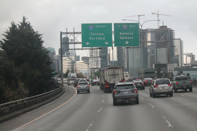Portland is no problem either. The I-5 in the cities of Seattle and