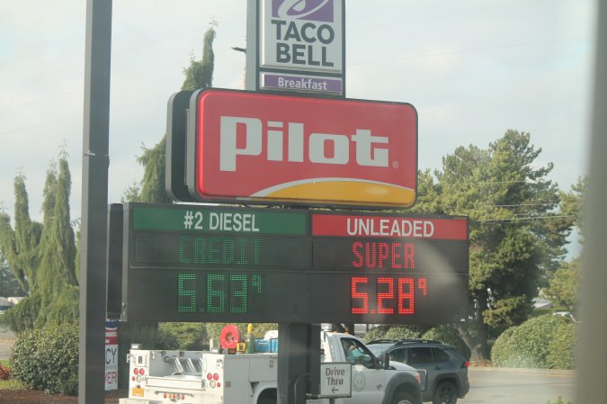 One more stop for gas. This time the price is about $1.55 $ CDN per