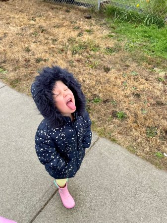 To finish our day, Natasha tries to catch raindrops on her tongue.