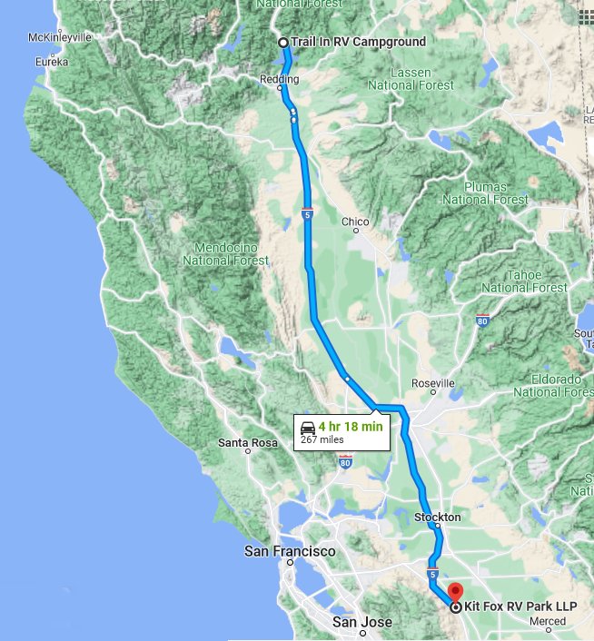 We stop near the town of Patterson for the night. It is close to the I-5.