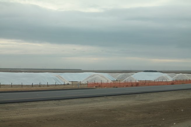 We do not know what is hiding under the big tarps or what those mountains of ?? are.