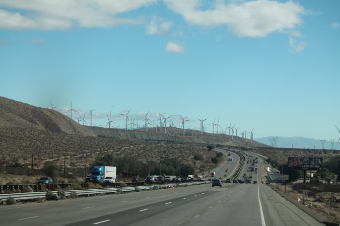 We moved at about 4 km-h for an hour before we got to the I-15.