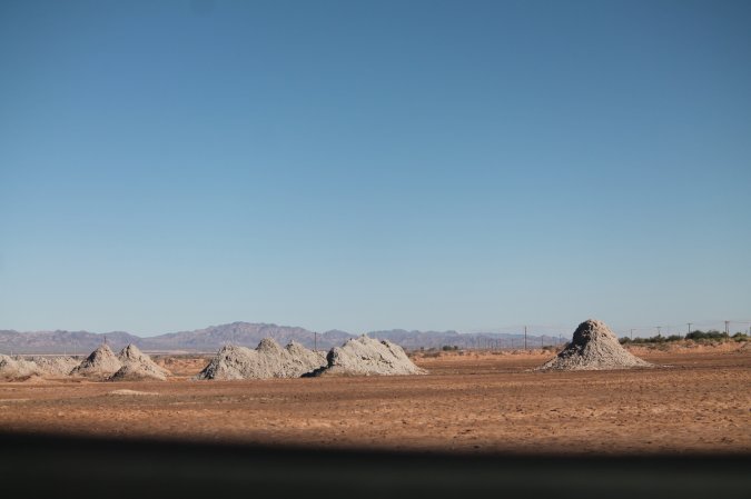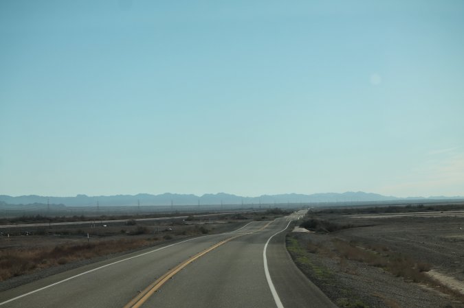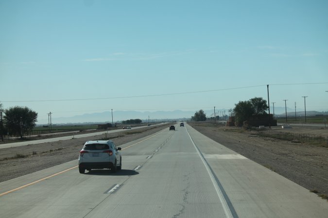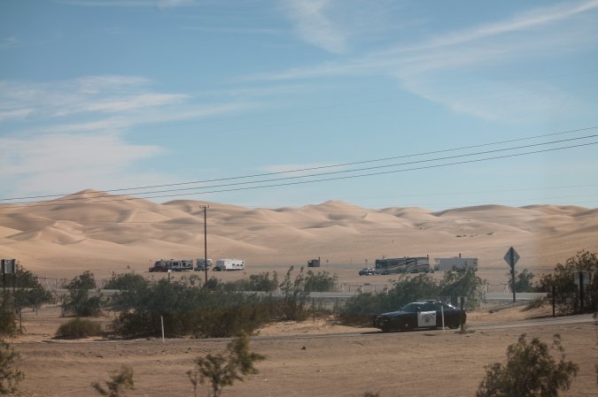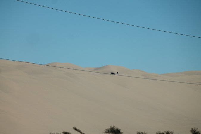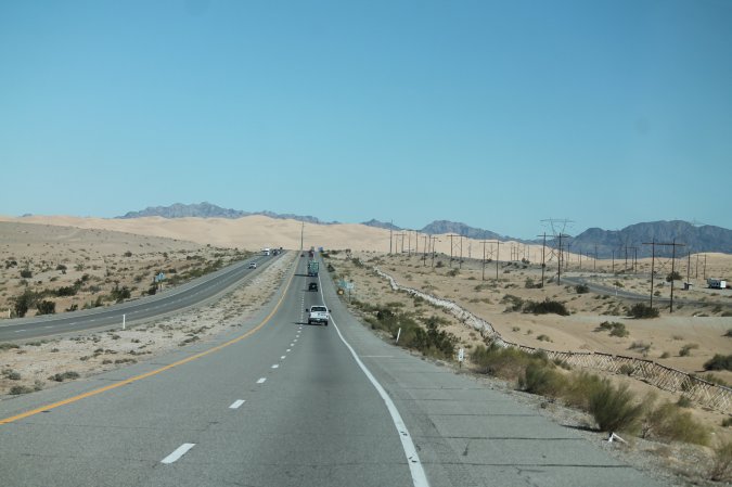 The I-8 pass through the Algodones Dunes. We are still in California. They are big sand dunes.