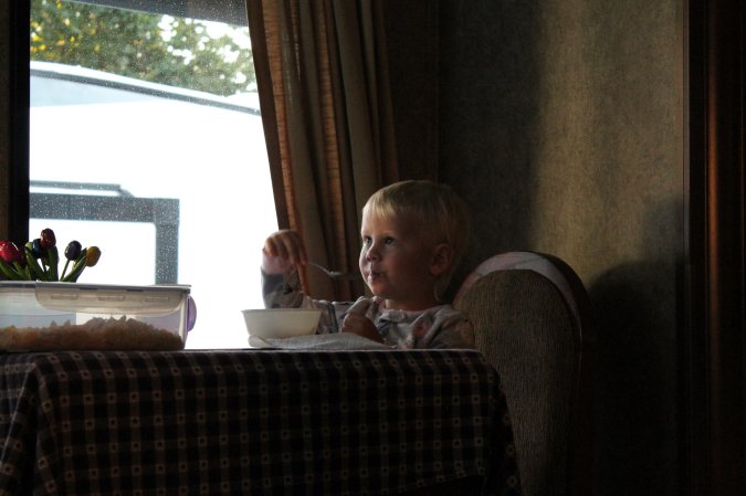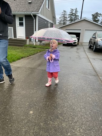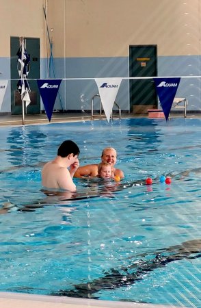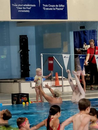 Natasha has her first swimming lesson this morning. Kristin is in the