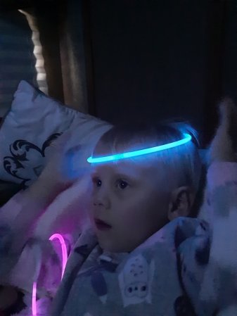 bed, snacks and movie. It did not happen fast enough! It was funny to
