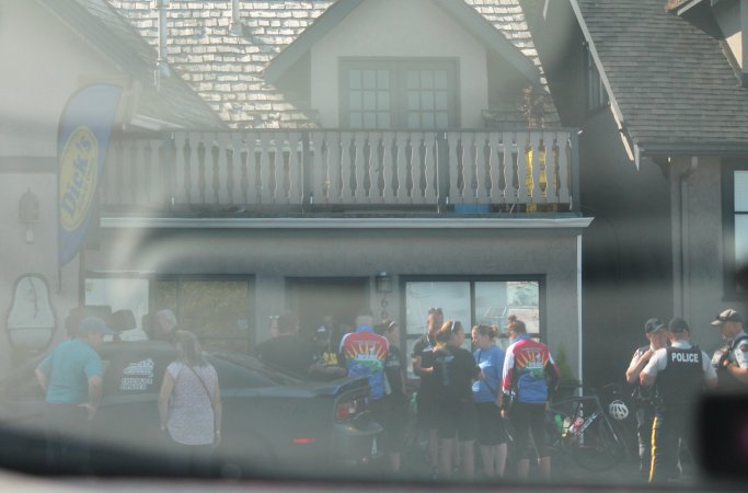 The restaurant is closed because of the bicycle ride to raise money for "Cop For Cancer".