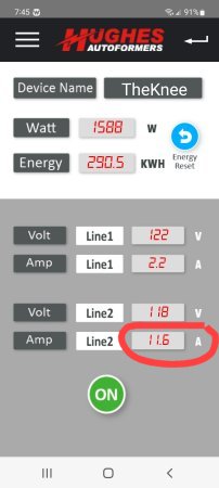 It works. As you can see, the hot water tank draws 11.6 Amps. Good.