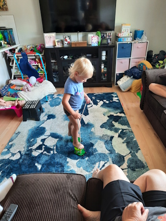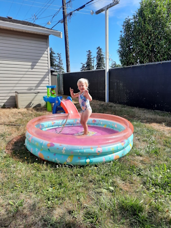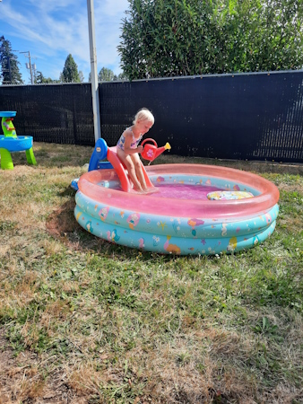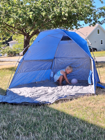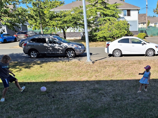 When they got back, they played with the ball and the sun shelter Jeremy just bought.