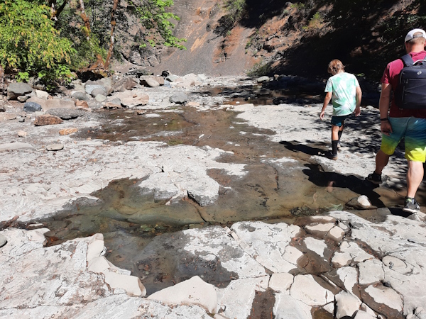 This is downriver from the falls. Because of the low water level, you can see the bottom of the river.