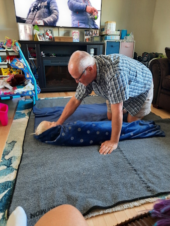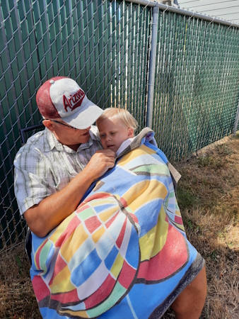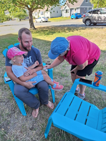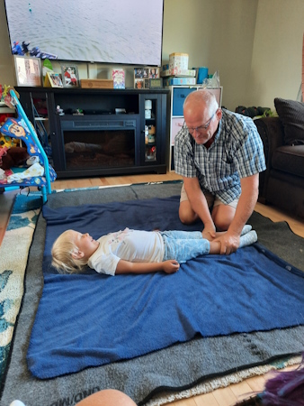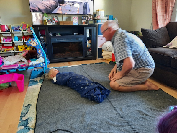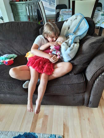 Natasha fell on her way back from daycare. Grand-maman is looking after the boohoo.